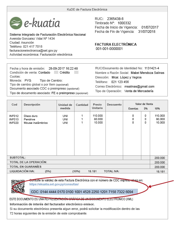 • KuDE de factura electrónica como representación gráfica complementaria.